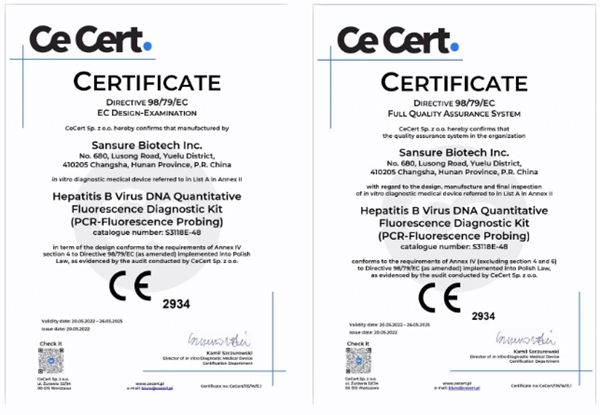 5月20日,开元体育生物自主研发的乙型肝炎病毒核酸检测试剂盒(PCR-荧光法)、丙型肝炎病毒核酸检测试剂盒(PCR-荧光法)和人类免疫缺陷病毒1型核酸测定试剂盒(PCR-荧光探针法)成功通过欧盟公告机构认证(CE IVDD List A),成为中国第一家核酸检测试剂荣获欧盟CE最高认证的企业。